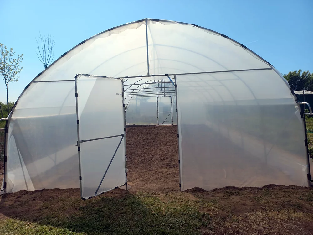 - Structură metalică completă: arcade, picioare, contra-vânturi, suport de cultură pentru fiecare arcadă, ranforsări la prima și ultima arcadă, 3 rânduri de țevi longitudinale