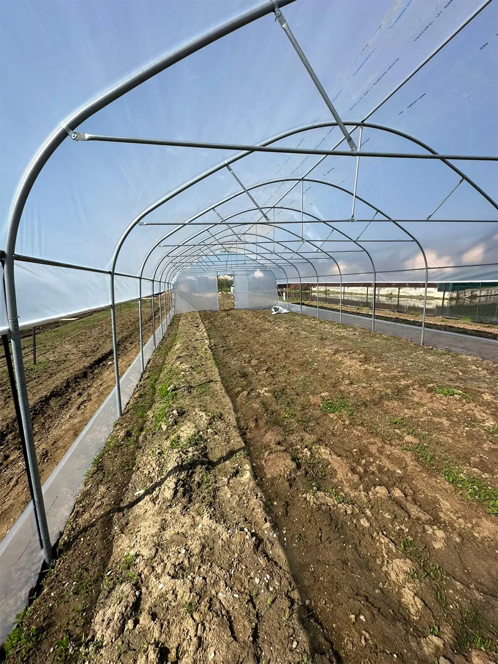 - Structură metalică completă, picioare, arcade, paravânturi, suport de cultură pentru fiecare arcadă, 3 țevi longitudinale, întărituri la partea de sus pe prima și ultima arcadă